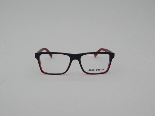 Dolce & Gabbana DG 3207 col.1872 matte blue acetate eyeglasses with red inside and metal logo on the temples.