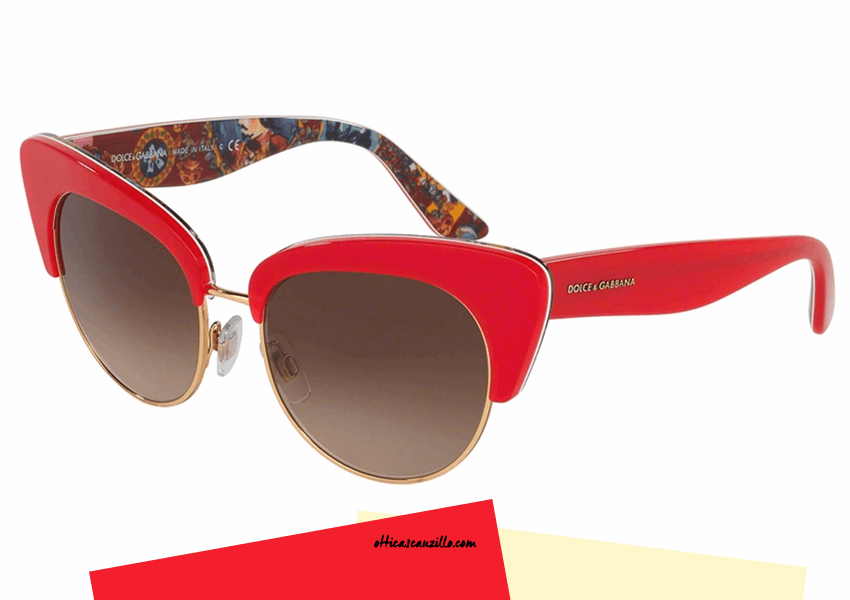 Nuova collezione occhiale da sole Dolce&Gabbana DG4277 col. 303413 edizione Carretto Siciliano con montatura in celluloide rossa e metallo dorato alternato.